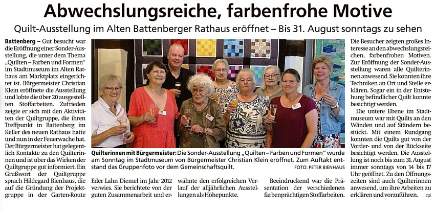 Quiltausstellungen Sommer 2025 in Goßfelden und Battenberg: